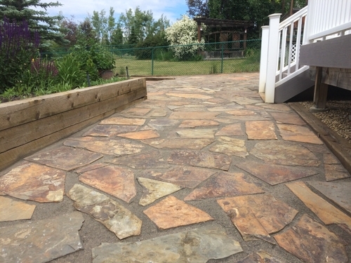 There were a lot of pieces to this project: we needed to get in plants, boulders, a pathway, a patio, rock beds and mulch. We got the boulders, pathway and patio in first, and then made sure all the other pieces lined up well and worked together in the end. I am pleased with the final result.